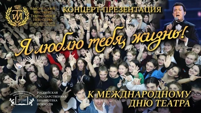 В рамках празднования Международного дня театра в Большом концертном зале Всероссийской государственной библиотеки иностранной литературы имени М. И. Рудомино, по инициативе Российской Государственной библиотеки искусств Мастера и студенты нашего Института покажут Концерт-презентацию «Я люблю тебя, жизнь!»